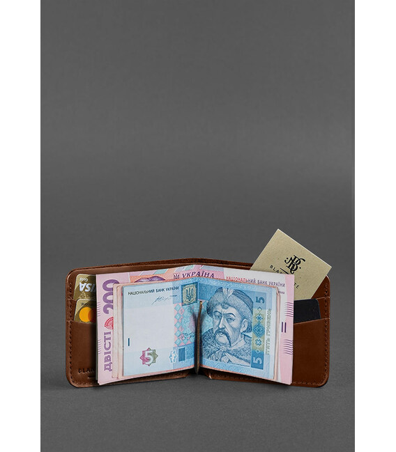 Кожаное портмоне 4.4 (с зажимом) светло-коричневый Crazy Horse