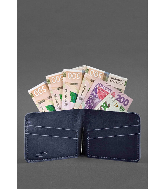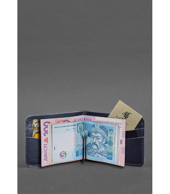 Кожаное портмоне 4.4 (с зажимом) синий краст