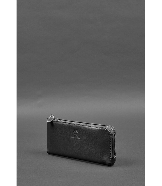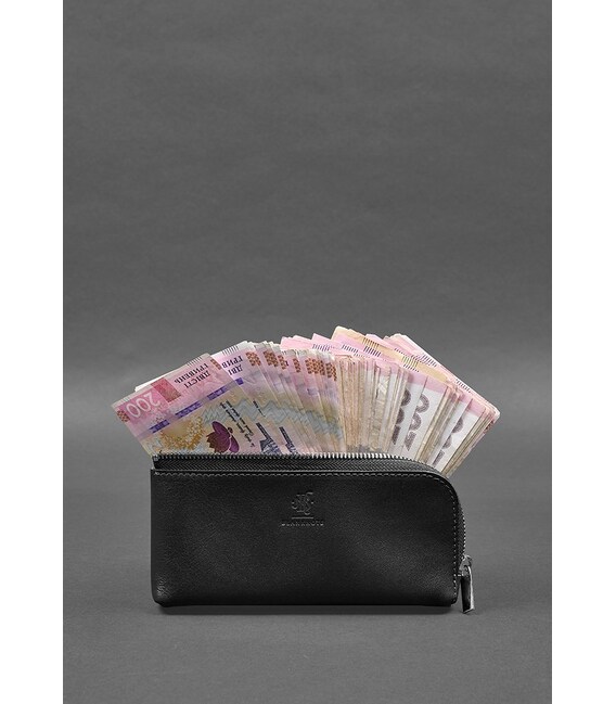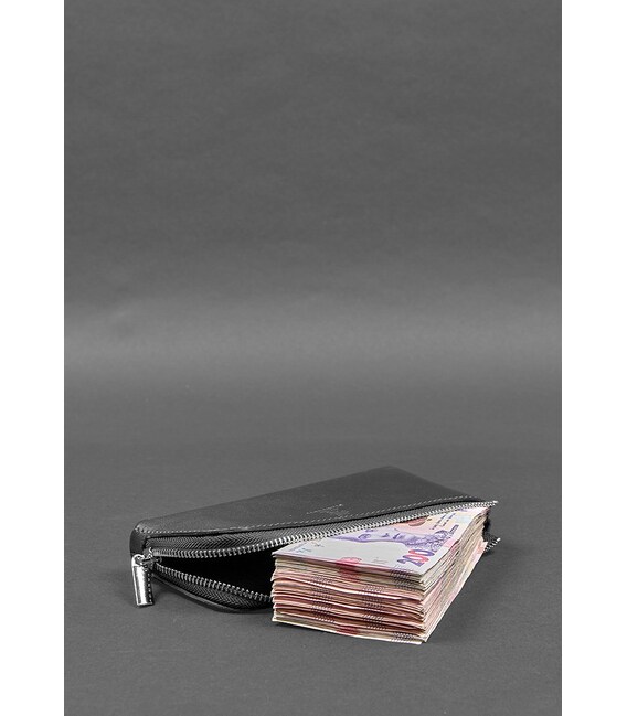 Кожаное портмоне-купюрник на молнии 14.0 Черное