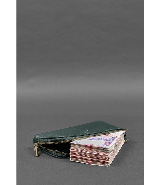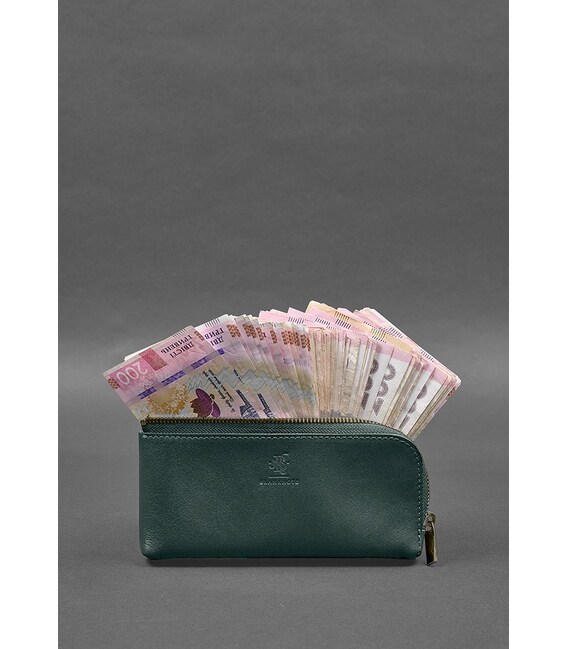 Кожаное портмоне-купюрник на молнии 14.0 зеленый