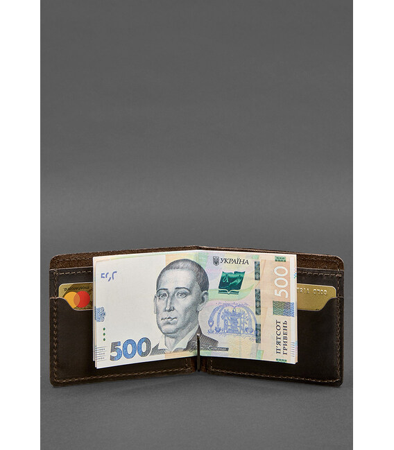 Кожаное портмоне 13.0 зажим темно-коричневое Crazy Horse