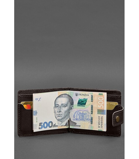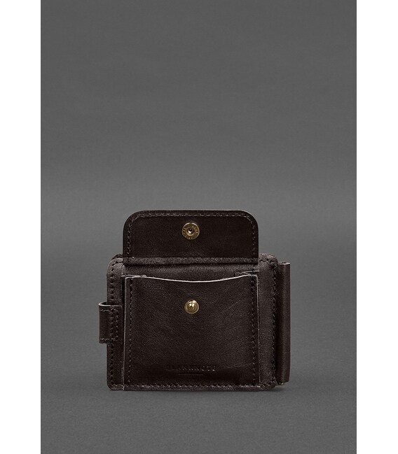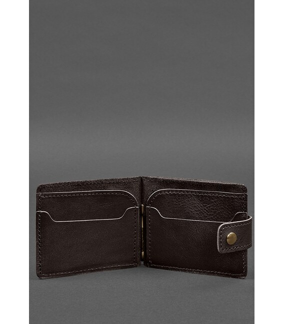 Кожаное портмоне 13.1 зажим с хлястиком темно-коричневый краст