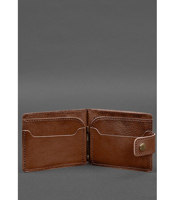 Кожаное портмоне 13.1 зажим с хлястиком светло-коричневый краст