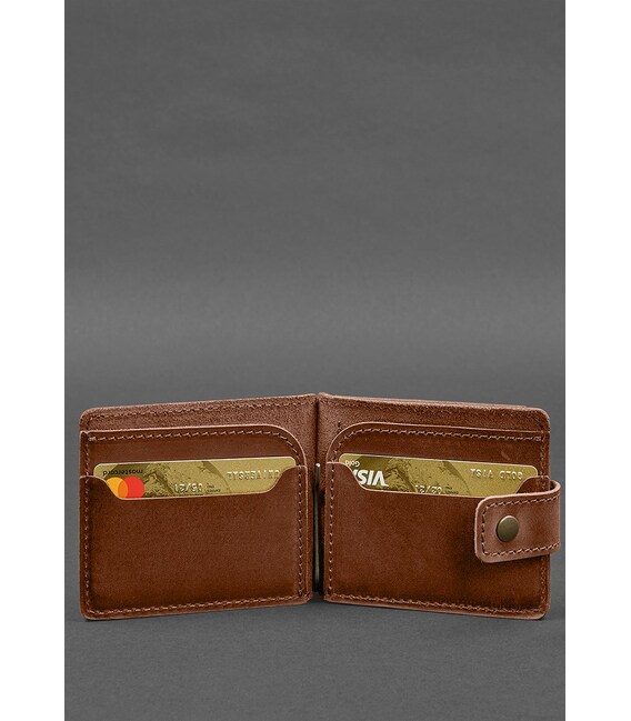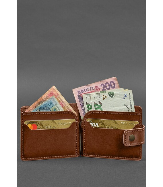 Кожаное портмоне 13.1 зажим с хлястиком светло-коричневое Crazy Horse идеально подходит для хранения ваших денежных средств. Портмоне имеет два слота для карт внутри. Карманы легко вмещают вашу кредитную карту, водительское удостоверение или любую другую карту, которую вы хотите носить с собой.Кроме того, на задней стенке портмоне расположена монетница на кнопке, что позволяет вам хранить мелочь без беспокойства, что она выпадет. Монетница легко открывается и закрывается, что облегчает доступ к монетам.Главной особенностью этого портмоне является металлический зажим для купюр. Этот зажим надежно фиксирует ваши купюры, не позволяя им выскользнуть или разлететься в вашем кармане. Это удобное и безопасное решение для тех, кто хочет быстро и легко хранить и получать доступ к своим деньгам.Изготовленное из высококачественной кожи Crazy Horse, это портмоне прослужит вам долгие годы и станет надежным спутником на повседневных делах и в путешествиях. В общем, это отличный выбор для тех, кто ищет удобный и функциональный аксессуар для хранения денег и карт.Закрывается портмоне на хлястик с кнопкой.Гарантия на портмоне - 3 года с момента покупки.ВНИМАНИЕ! Выделка данной кожи предполагает естественное появление на ней царапин и потертостей в ходе использования! От этого изделие становится более индивидуальным и приятным, это оценят настоящие поклонники винтажного стиля:) А так же первое время кожа может краситься при сильном трении об другие предметы - это особенность её выделки, постепенно этот эффект уменьшается, кожа полируется и приобретает чуть глянцевый эффект.Фурнитура и комплектация может быть изменена производителем