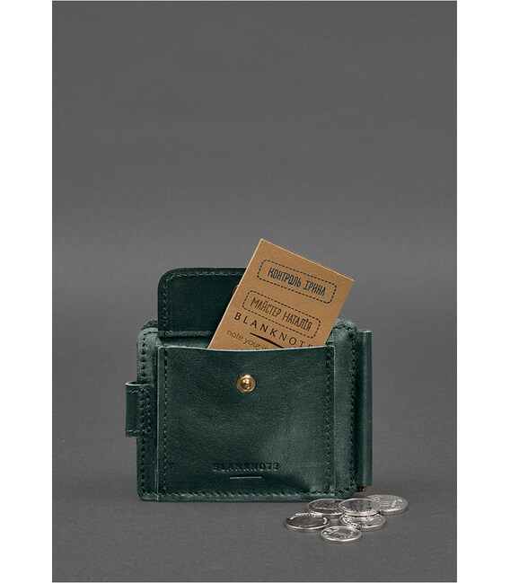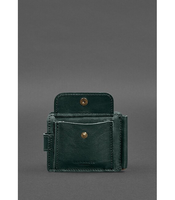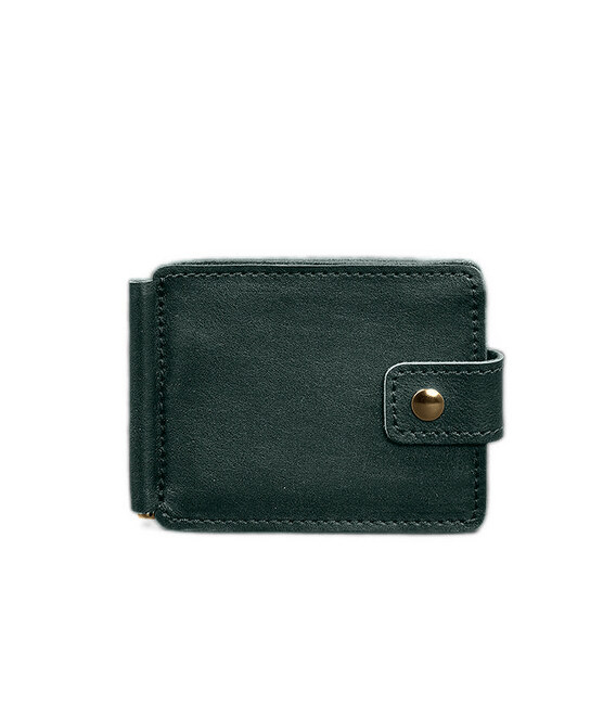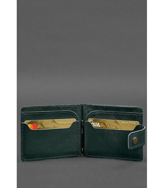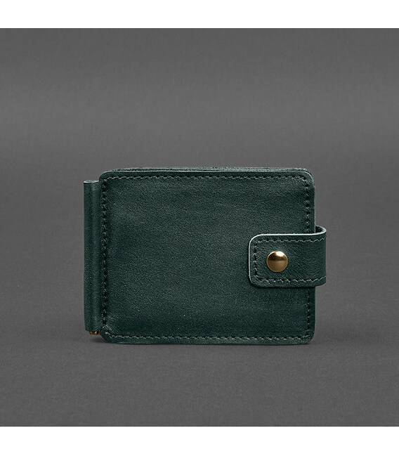 Кожаное портмоне 13.1 зажим с хлястиком зеленый краст