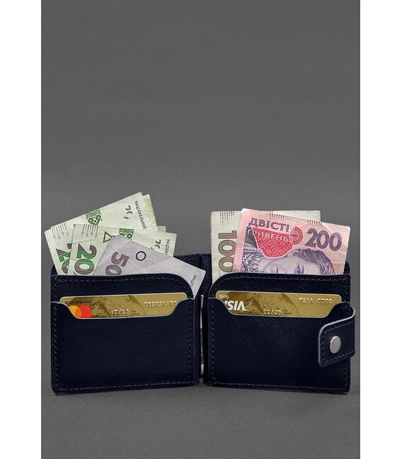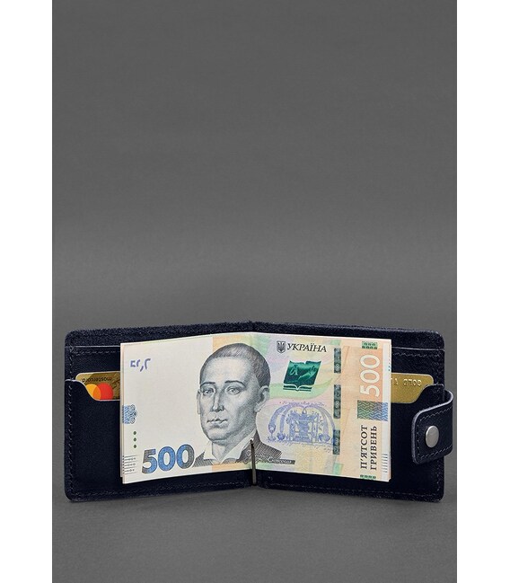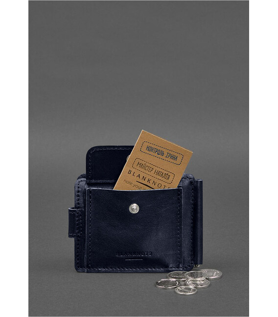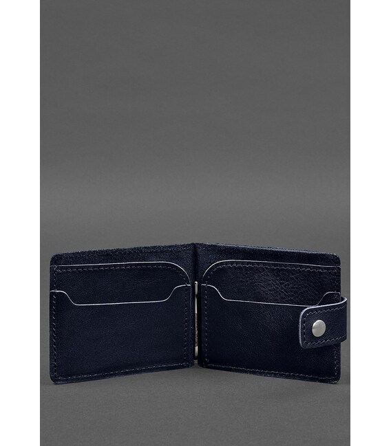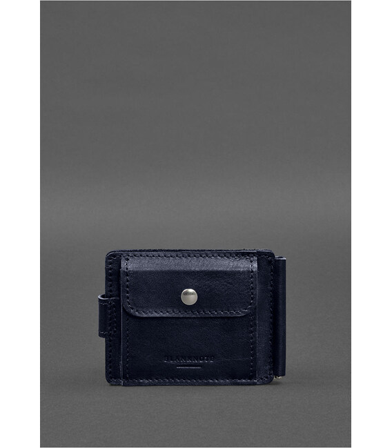 Кожаное портмоне 13.1 зажим с хлястиком синий краст