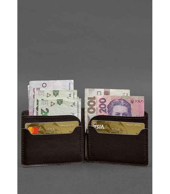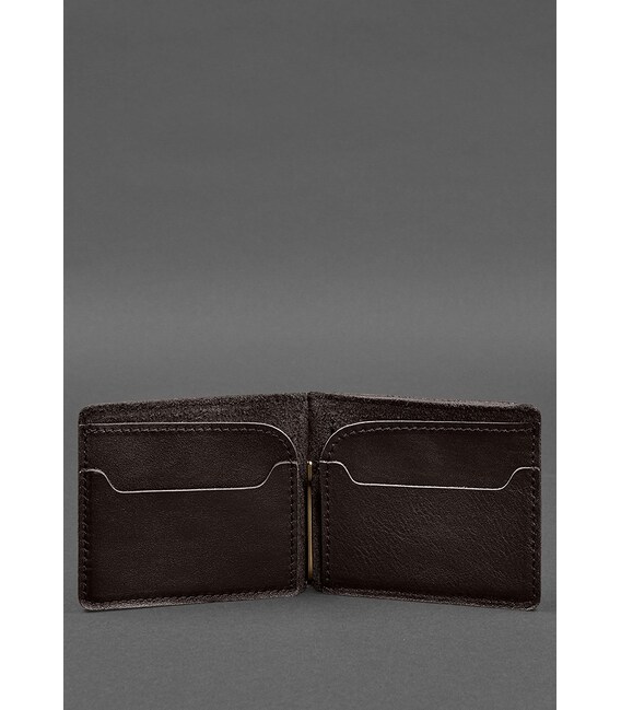 Кожаное портмоне 13.0 зажим темно-коричневый краст