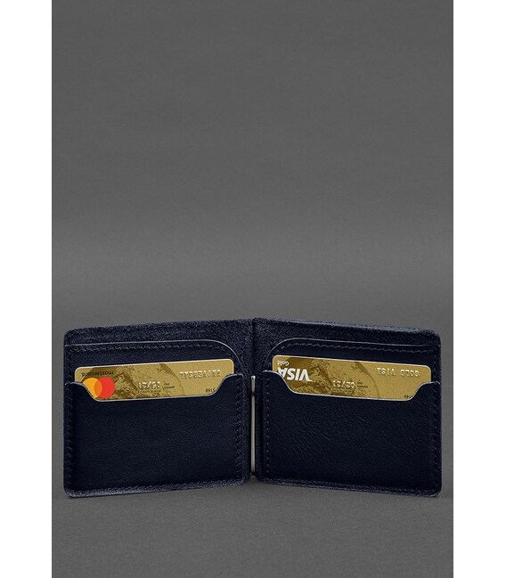 Кожаное портмоне 13.0 зажим синий краст