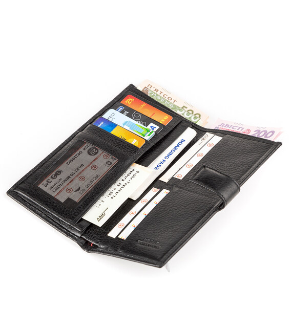 - 9 ячеек для банковских карт и одно прозрачное отделение для фото и документов;