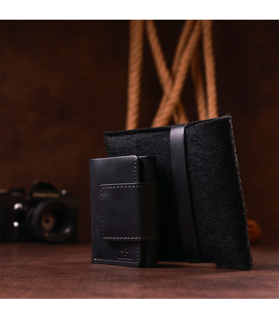 Описание Строгое компактное портмоне унисекс на магните GRANDE PELLE 11204 Черное