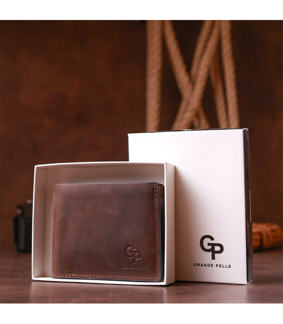 Описание Классическое портмоне унисекс на магните GRANDE PELLE 11208 Коричневое