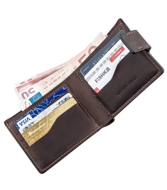 Тонкое классическое портмоне из натуральной итальянской кожи высочайшего качества. Портмоне в классическом стиле всегда остается на пике популярности. Аксессуар закрывается на кожаный хлястик с кнопкой. На лицевой стороне изделия тисненый логотип бренда. Модель дополнена крепкой серебристой фурнитурой и прошита коричневой нитью по краям. Изделие упаковано в фирменную картонную коробку, которая может заменить подарочную упаковку. Портмоне станет прекрасным решением для подарка близкому человеку.