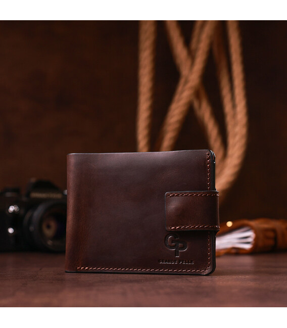 Описание Тонкое кожаное портмоне унисекс GRANDE PELLE 11220 Коричневое