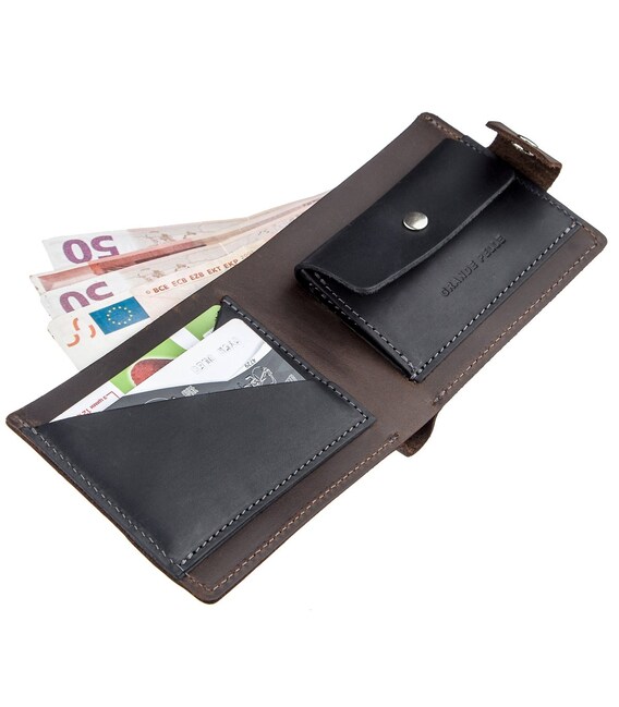 Особенностью данного портмоне является то, что монетник и слот для кредитки выполнены из кожи черного цвета. Комбинировать разные типы или цвета кожи стало очень популярно. Такие модели смотрятся очень оригинально и со вкусом. В производстве портмоне использовалась исключительно итальянская кожа высочайшего качества. Взяв в руки такое портмоне вы точно не станете сомневаться, что это натуральная кожа. Такой аксессуар будет идеальным подарком даже для самого придирчивого мужчины. В жизни выглядит намного лучше, чем на фото.