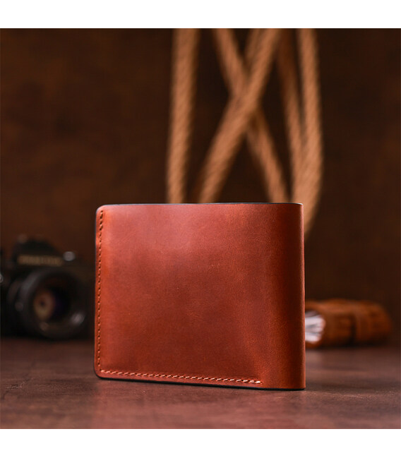 Очень компактное портмоне с самым необходимым функционалом. Особенностью данной модели является ее минимальный размер, который поместится в карман брюк или небольшую сумочку. По краям изделие прошито светлой коричневой нитью и имеет логотип внутри и на лицевой стороне изделия. Изделие также выполнено из натуральной кожи и внутри аксессуара. Вместительные отделения для купюр и фиксирующие слоты для карточек добавляют удобство вашему кошельку. В комплекте к портмоне идет фирменная картонная упаковка.