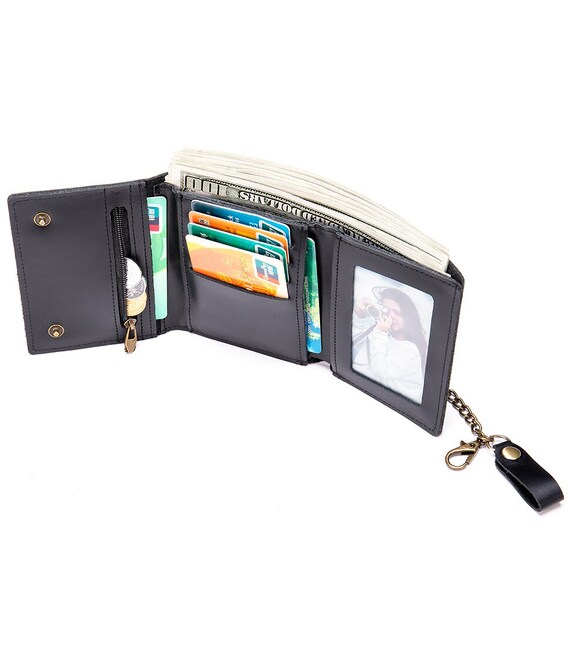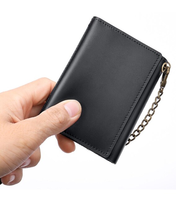 Функциональный и стильный кошелек унисекс на цепочке. Модель имеет неповторимый и оригинальный дизайн. Небольшой размер аксессуара позволит поместить его в небольшую сумку или карман штанов. Подойдет для любителей небольших кошельков. Изделие в три сложения. Кошелек будет прекрасным подарком для ваших близких и друзей.