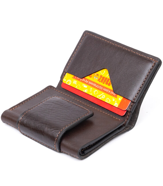 Описание Портмоне вертикальное с хлястиком на магните на одно отделение GRANDE PELLE 11305 Коричневое