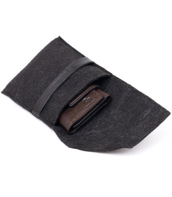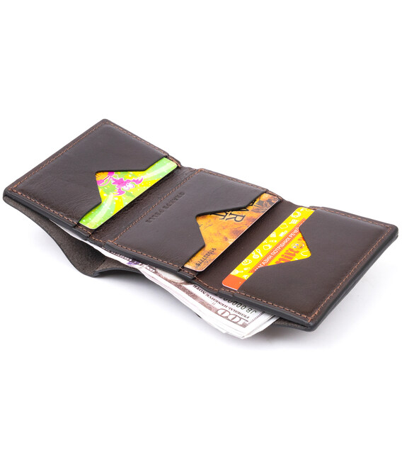 Вертикальный бумажник в гладкой коже с минимальным дизайном. Внутри - несколько ячеек для карт и одно отделение для купюр. Идеальный вариант для любого мужчины, который не любит объемных и больших аксессуаров. Несмотря на свой небольшой размер портмоне очень дорого и солидно смотрится. Кожа красиво блестит на солнце. Изделие изготовлено с учетом всех модных тенденций и пожеланий клиентов. Популярная модель из новой коллекции. В комплекте фирменный войлочный чехол. Портмоне - идеальный подарок для ваших близких.