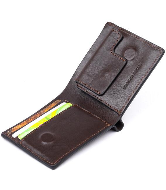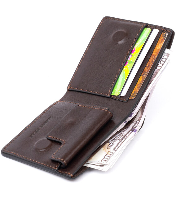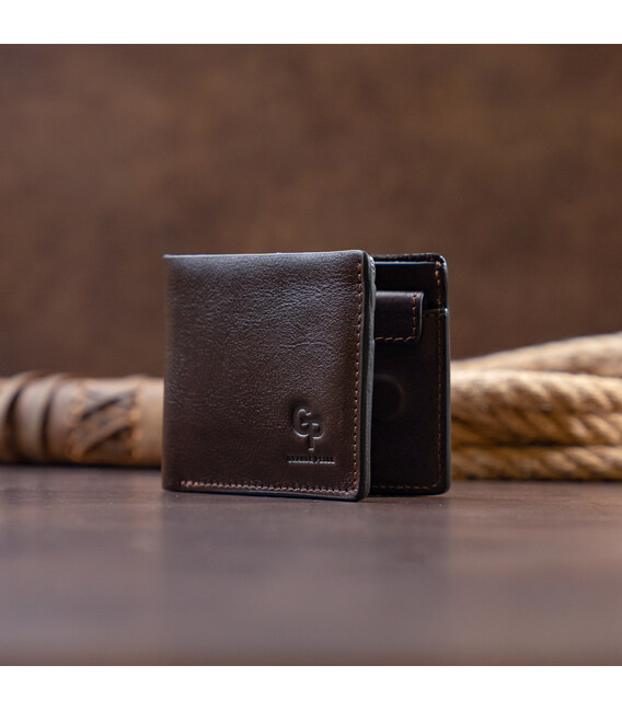 Популярная модель теперь и в коричневом цвете. Два отделения для купюр, ячейки для кредиток, монетница на кнопке - все это создает практичный дизайн для современного мужчины. Портмоне подойдет для повседневной жизни или на подарок. Аксессуар в блестящей гладкой коже, которая совсем неприхотлива в уходе. Дополнено портмоне качественной фурнитурой, которая будет вам долго служить. Аксессуар удобно лежит в руке, помещается в карман или маленькую сумку. Упаковано портмоне в войлочный чехол.