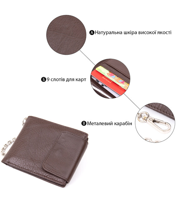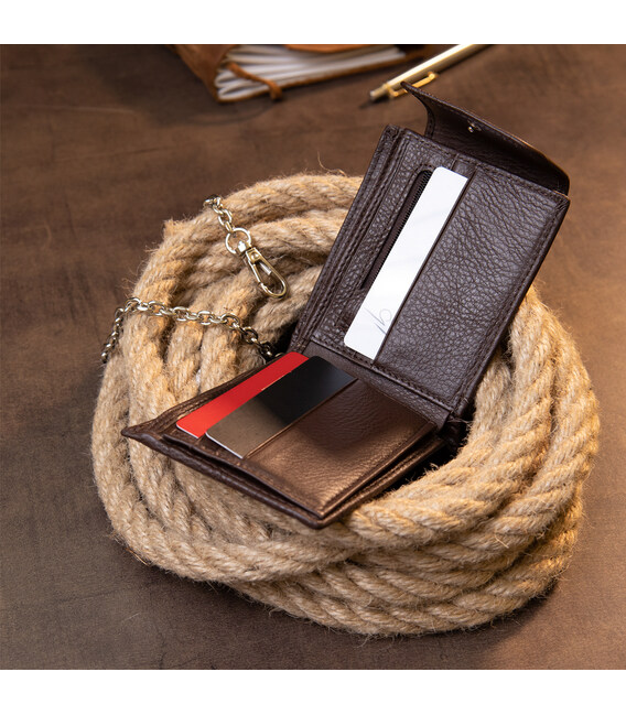 Описание Портмоне унисекс с цепочкой Vintage 20425 Коричневое