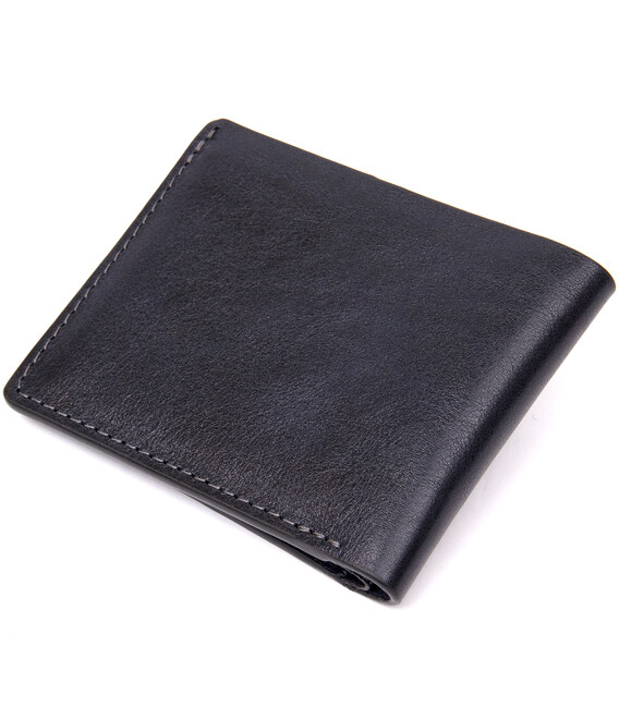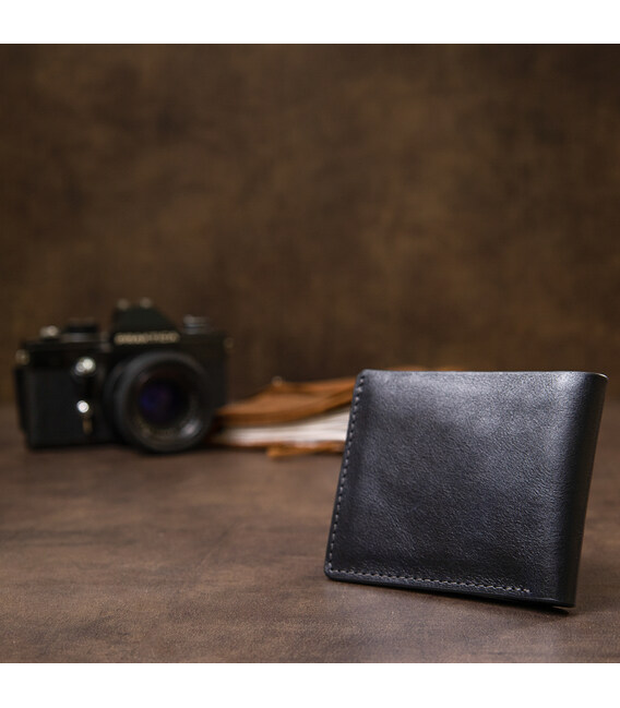 Простое, но в то же время функциональное портмоне из натуральной кожи высокого класса. Имеет насыщенный черный цвет и аккуратные темные швы. Благодаря, своим компактным размерам легко поместится в любой сумке или кармане штанов. Данный аксессуар может стать чудесным подарком на любой праздник.