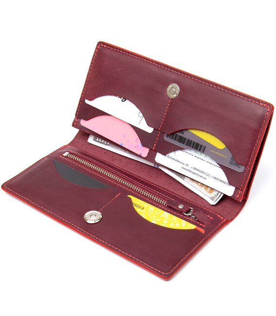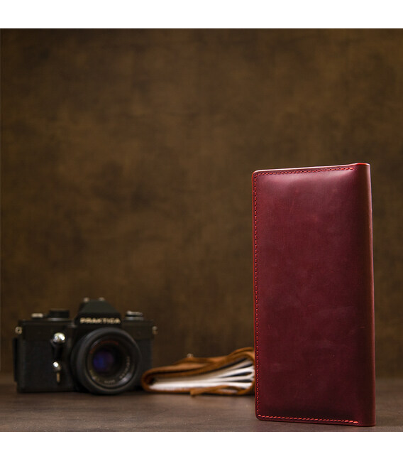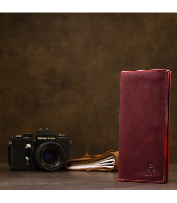 Описание Кожаное винтажное портмоне GRANDE PELLE 11468 Бордовый
