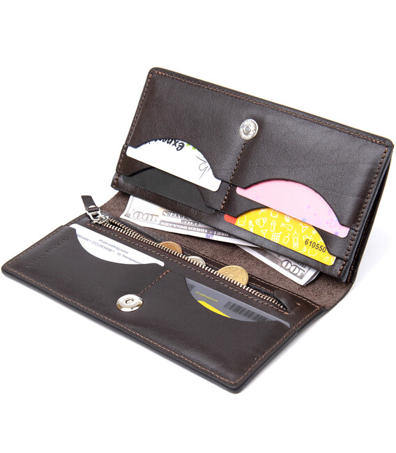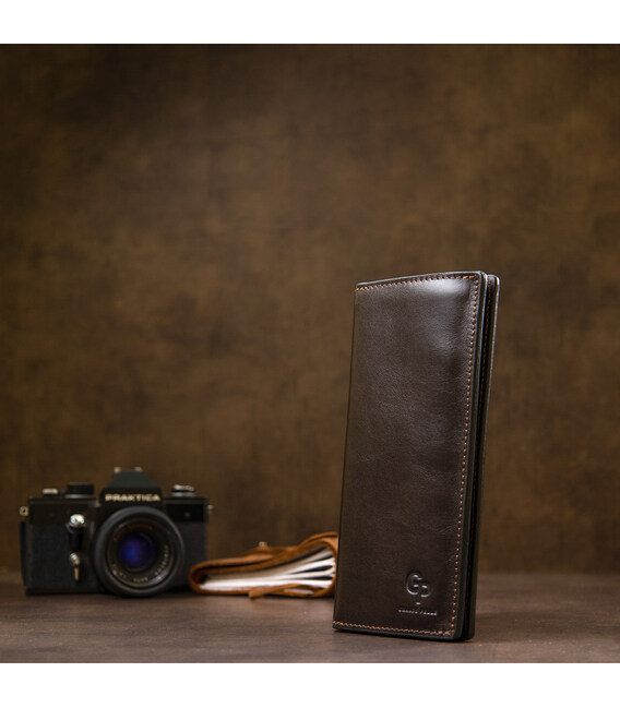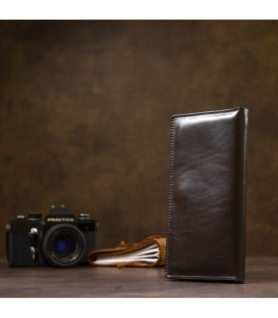 Описание Кожаное глянцевое портмоне GRANDE PELLE 11469 Темно-коричневый