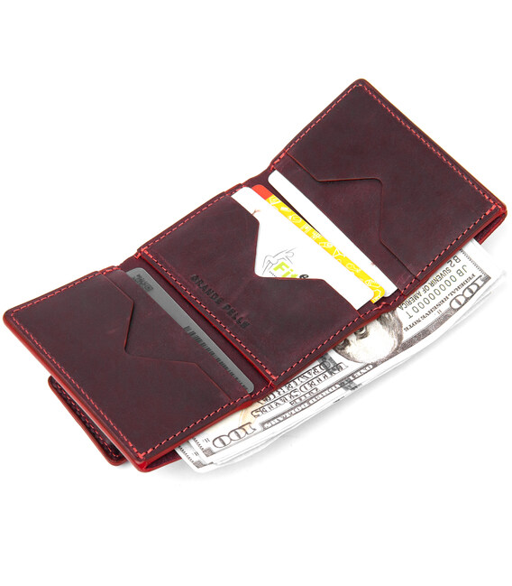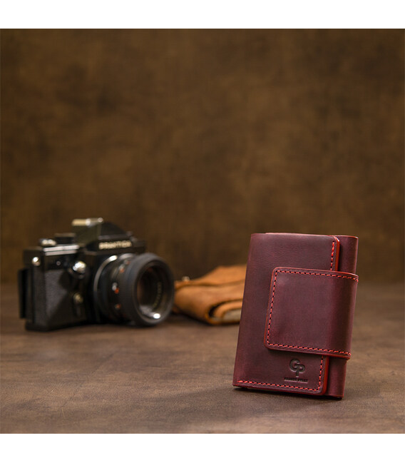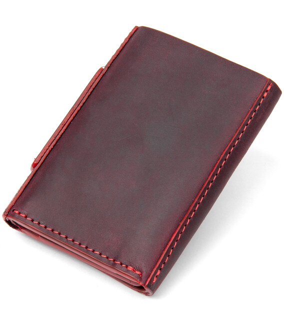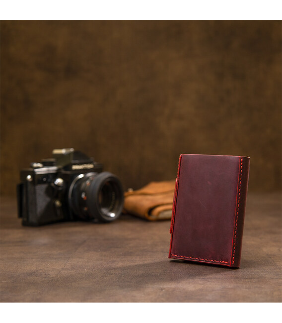Практичное и очень стильное портмоне из натуральной кожи в элегантном бордовом цвете. Имеет красивую фактуру с эффектом старины, что очень модно сегодня. Внутри есть 6 отдельных слотов для визитных и кредитных карт, а также одно вместительное отделение для банкнот. Упаковка – фирменный чехол.