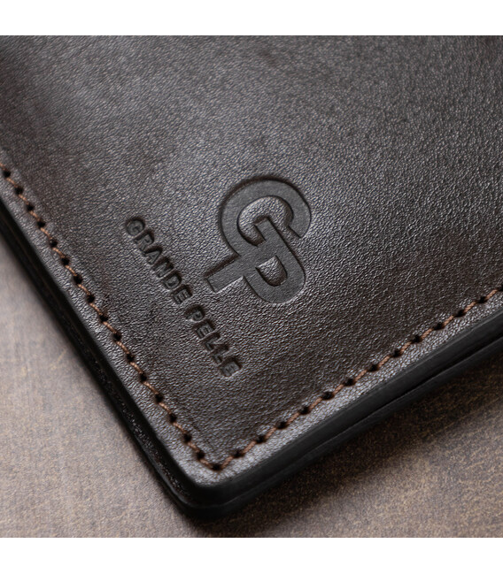 Описание Кожаное мужское глянцевое портмоне GRANDE PELLE 11517 Коричневый