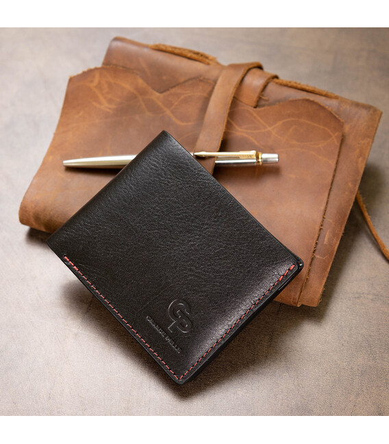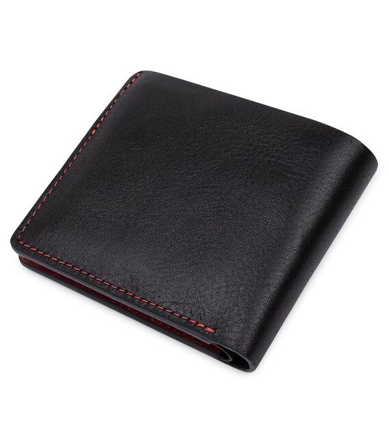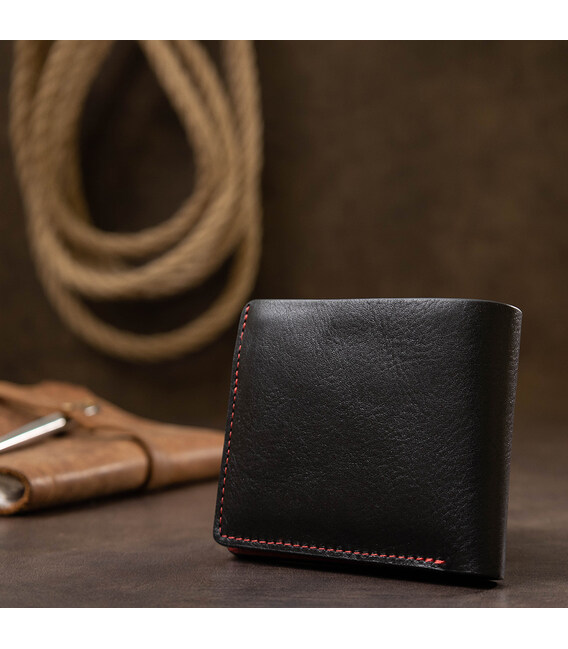 Стильное портмоне из натуральной высококачественной кожи, которая устойчива к различным повреждениям. Имеет красивое сочетание черного и красного цвета внутри, также по периметру проходит красная строчка. Фактура кожи – гладкая с легким переливом. Внутри два вместительных отделения, слоты для карт и удобная монетница на кнопке. Упаковано изделие в фирменную коробку.