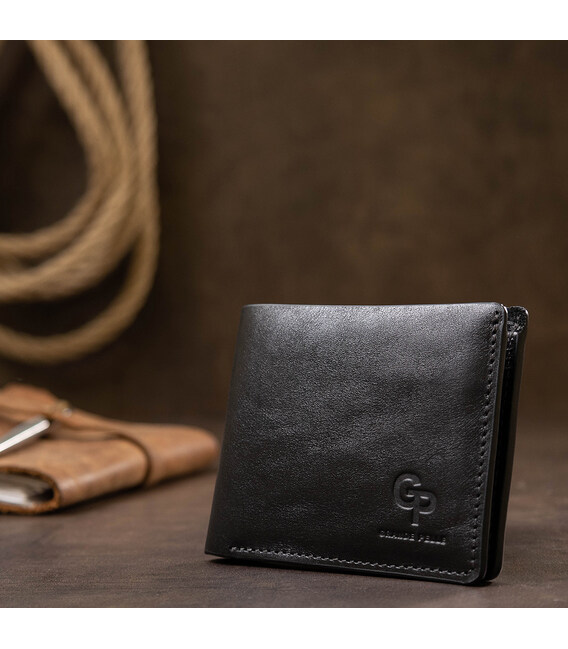 Описание Кожаное мужское глянцевое портмоне GRANDE PELLE 11554 Черный