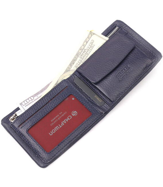 Описание Оригинальное мужское портмоне из зернистой кожи KARYA 21062 Синий