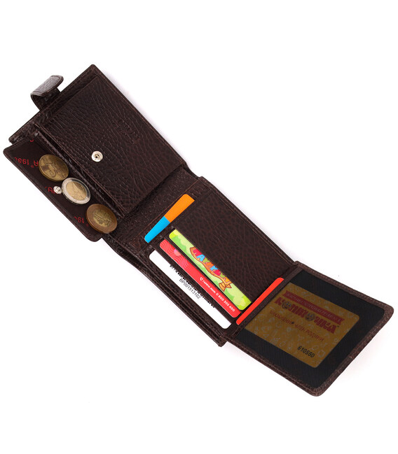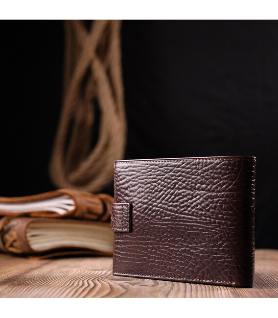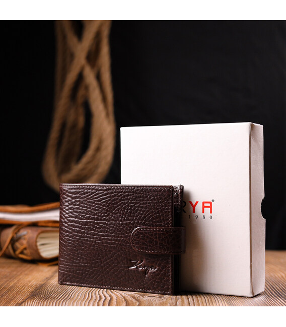 Описание Практичное мужское портмоне с хлястиком из натуральной кожи KARYA 21086 Коричневый