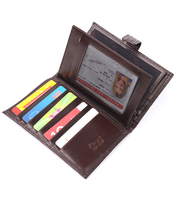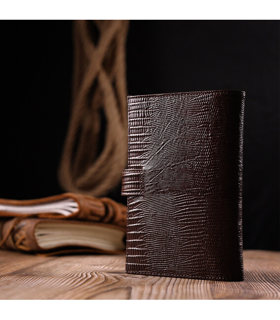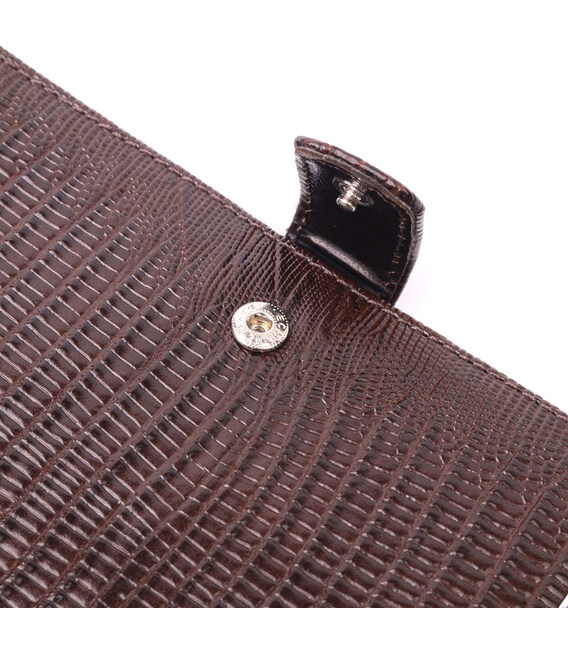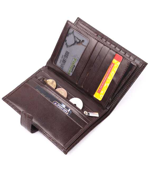 Описание Лакированное мужское портмоне с хлястиком из натуральной фактурной кожи KARYA 21194 Коричневый