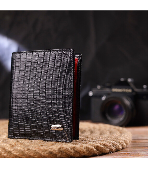 Описание Мужское портмоне из натуральной фактурной кожи CANPELLINI 21501 Черное