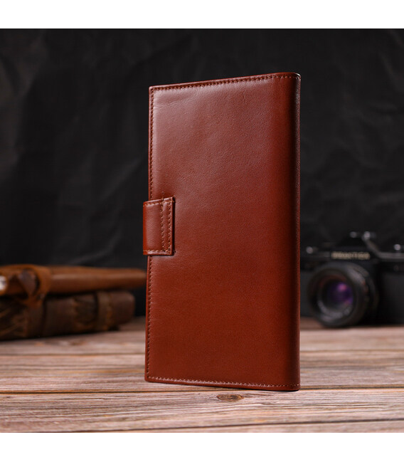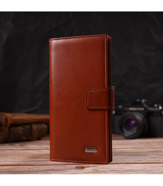 Описание Практичное вертикальное мужское портмоне из натуральной гладкой кожи CANPELLINI 21721 Коричневое