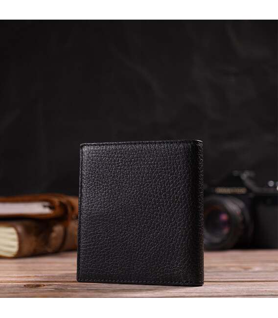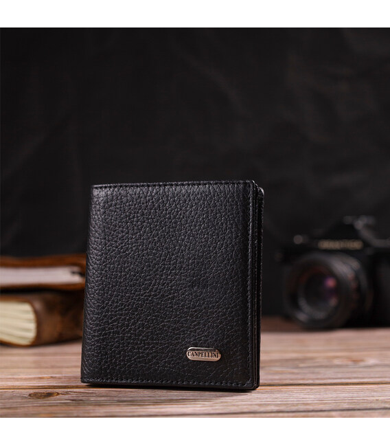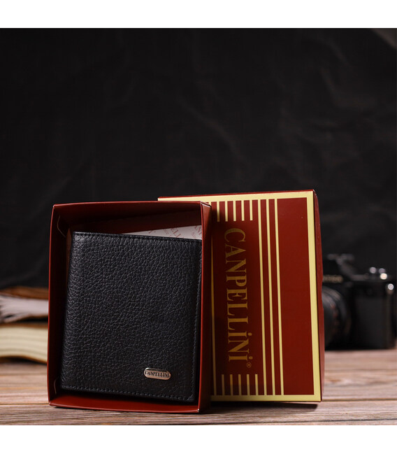 Описание Классическое портмоне для мужчин из натуральной зернистой кожи CANPELLINI 21742 Черное