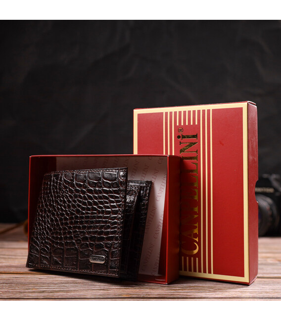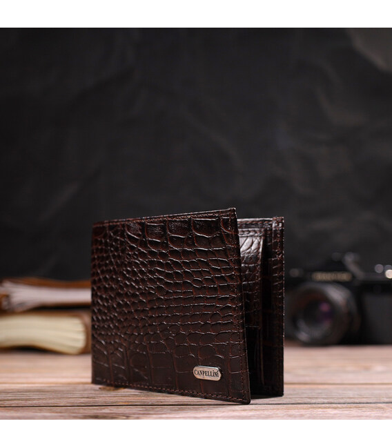 Описание Стильное мужское портмоне из натуральной фактурной кожи с тиснением под крокодила CANPELLINI 21777 Коричневое