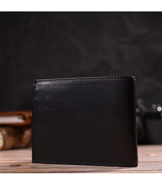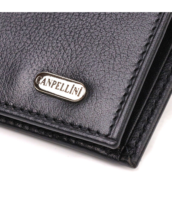 Описание Классическое горизонтальное мужское портмоне из натуральной кожи флотар CANPELLINI 21778 Черное