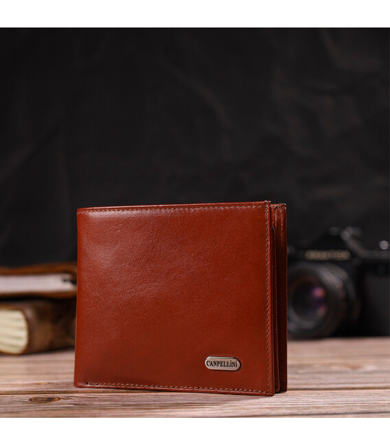 Мужское горизонтальное портмоне из натуральной гладкой кожи CANPELLINI 21780 Коричневое