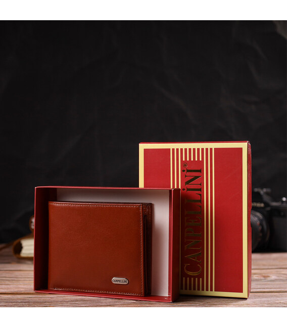 Описание Мужское горизонтальное портмоне из натуральной гладкой кожи CANPELLINI 21780 Коричневое