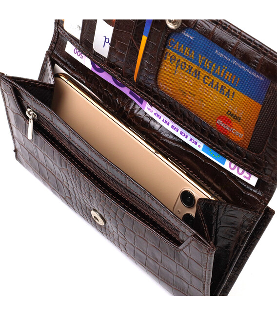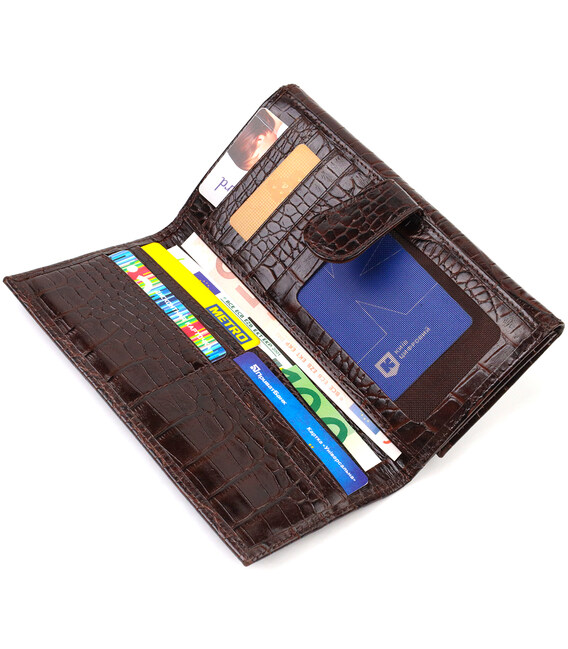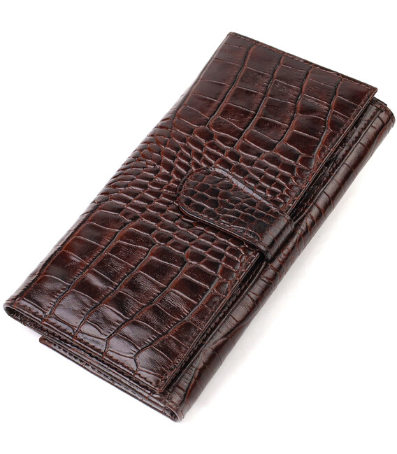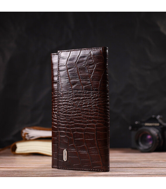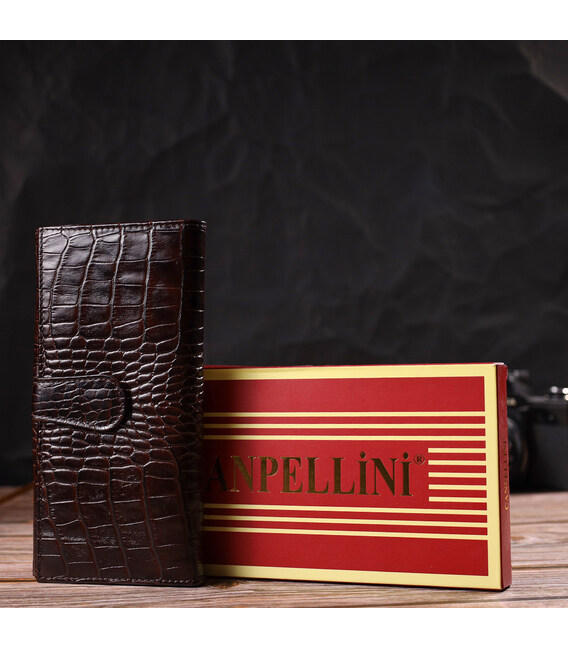 Описание Стильное портмоне унисекс из натуральной кожи с тиснением под крокодила CANPELLINI 21847 Коричневое
