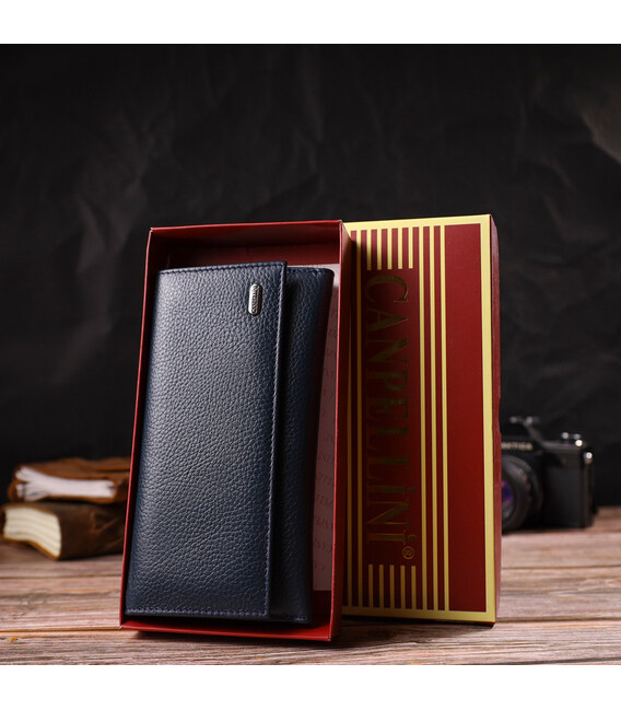 Описание Надежное портмоне унисекс из натуральной кожи флотар CANPELLINI 21849 Синее