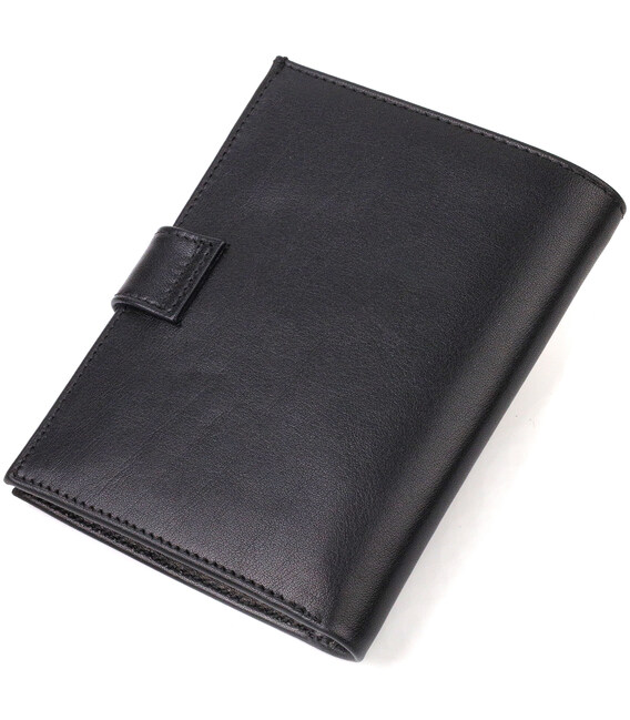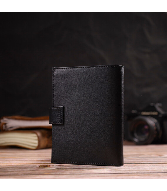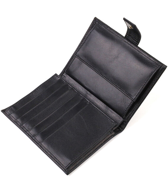 Описание Классическое вертикальное мужское портмоне среднего размера из натуральной гладкой кожи CANPELLINI 21857 Черное