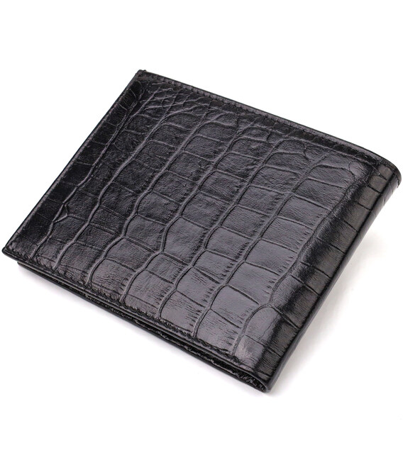 Стильное мужское портмоне из натуральной кожи с тиснением под крокодила CANPELLINI 21867 Черный