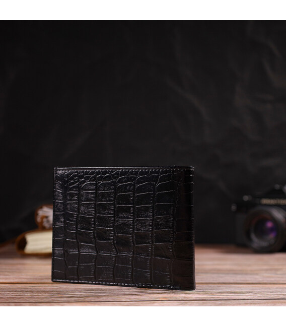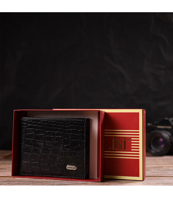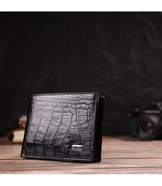 Описание Стильное мужское портмоне из натуральной кожи с тиснением под крокодила CANPELLINI 21867 Черный