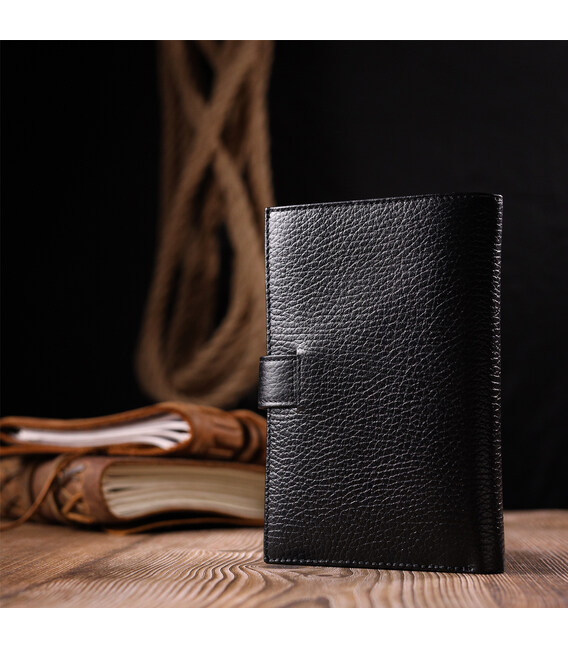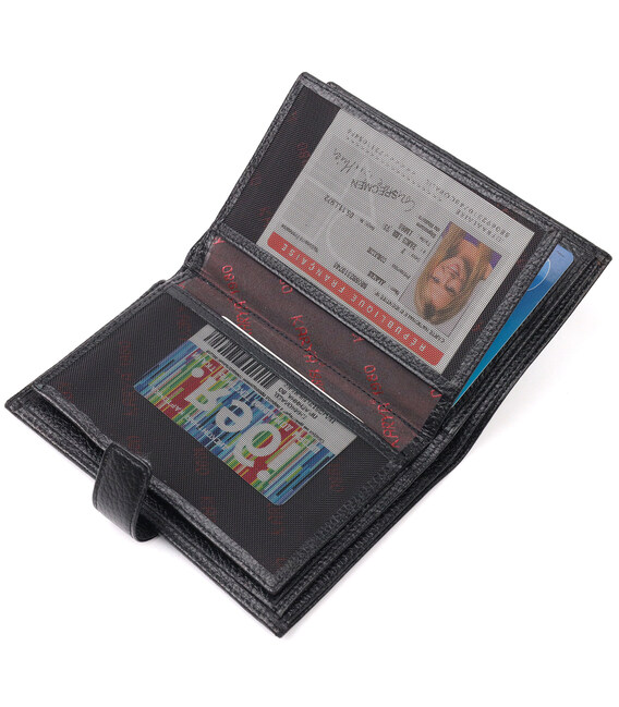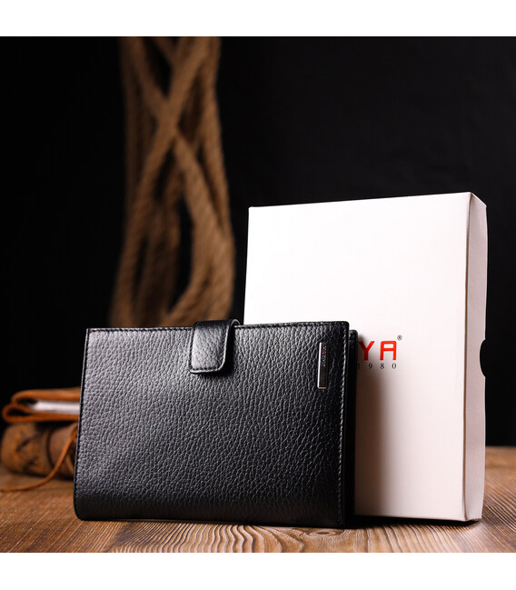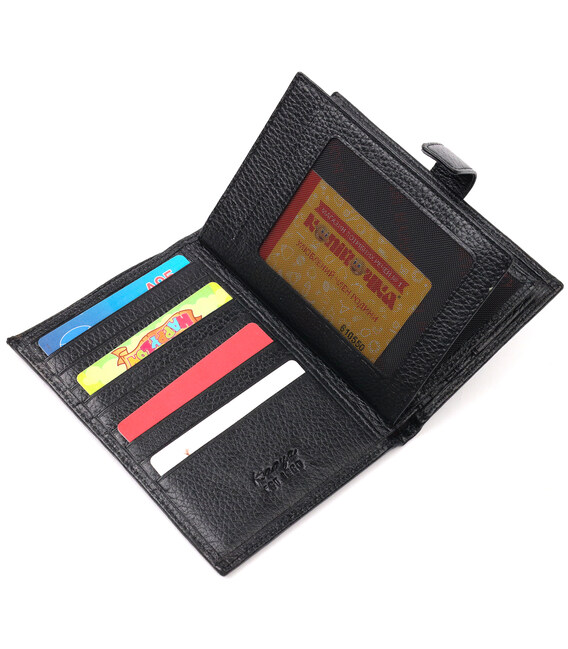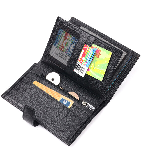 Описание Вертикальное мужское портмоне с хлястиком из натуральной кожи KARYA 21195 Черный