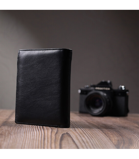 Описание Мужское кожаное портмоне для карт купюр и монет ST Leather 22733 Черное