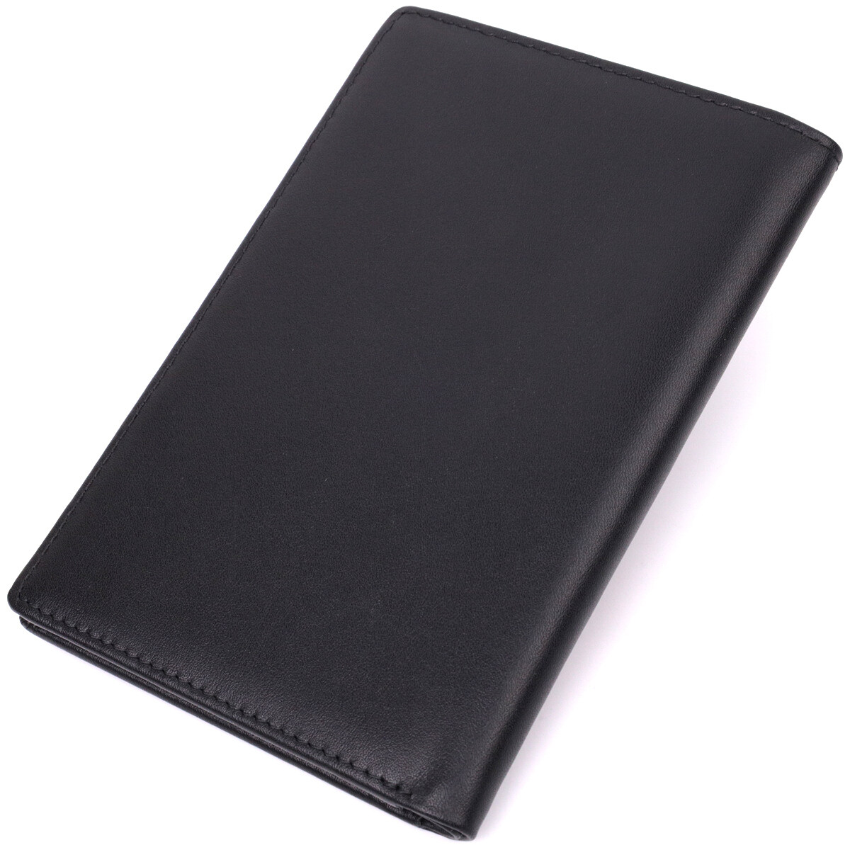 Лаконичное мужское портмоне на одно отделение для купюр. Аксессуар закрывается пополам, без застежки. Имеет приятную гладкую и матовую фактуру. Материал изготовления – натуральная кожа высокого качества исполнения.
