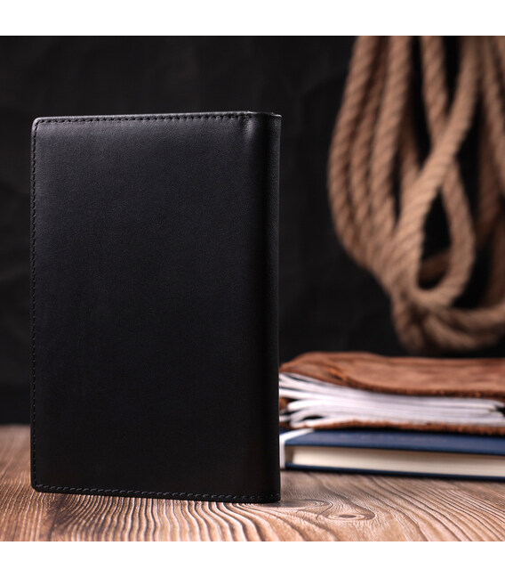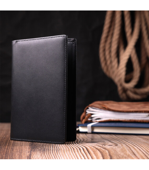Описание Мужское портмоне без застежки из натуральной кожи Vintage sale_15036 Черный